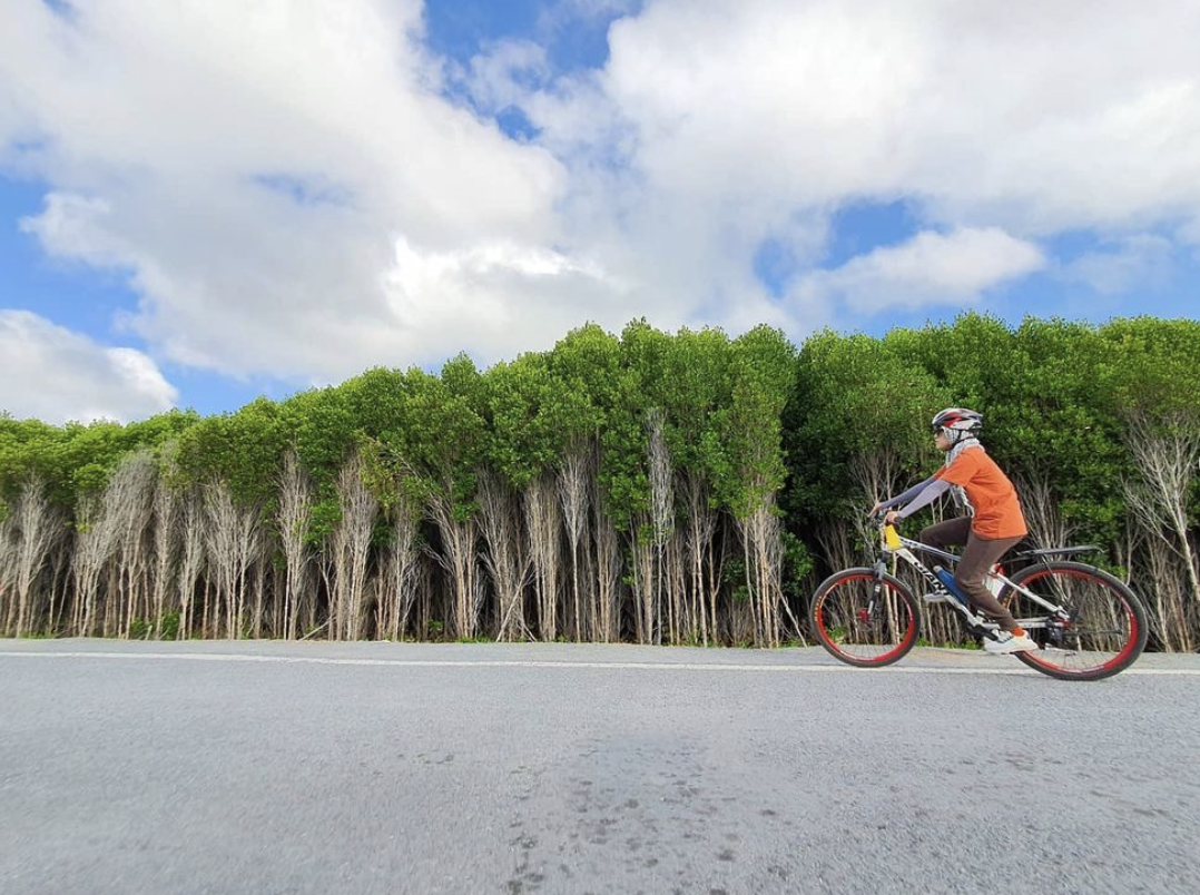 The road is about 74km, starting from Hang Xanh roundabout, you cycle towards Nhon Trach District, Dong Nai City. You can also choose the road through Thoi Dai bridge, Diamond Island to Cat Lai ferry, to avoid Dong Van Cong street, which is often stuck in traffic for a long time. This route is chosen by many cycling groups because there are many sections running through quiet rubber forests and luxuriant and fruit-laden orchards.
